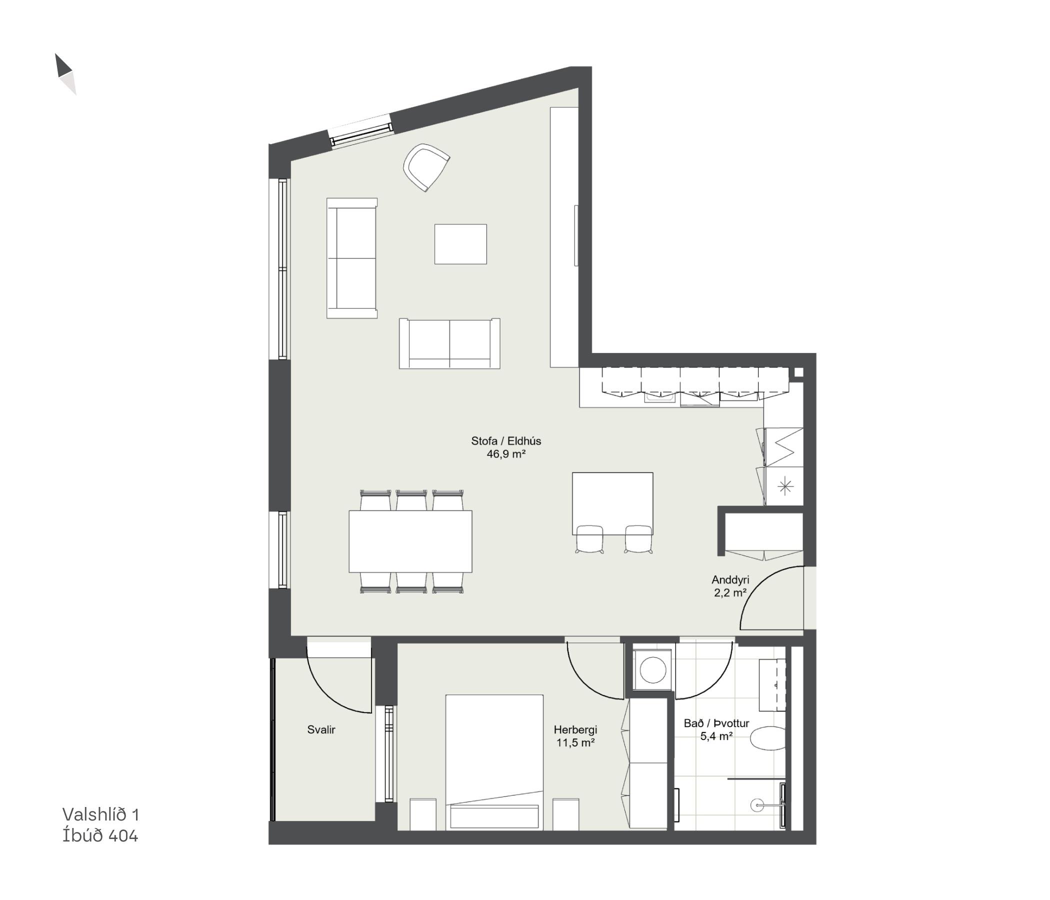 Hlíðarhorn.is kynnir Valshlíð 1- Íbúð 404. Íbúðin er staðsett í Hlíðarhorni, glæsilegri nýbyggingu á frábærum stað í miðbænum. Íbúðin afhendist fullbúin í desember 2025.
